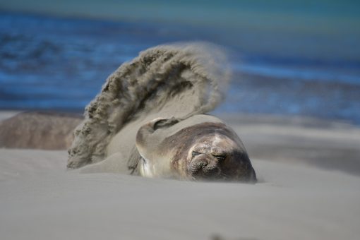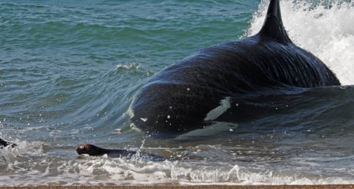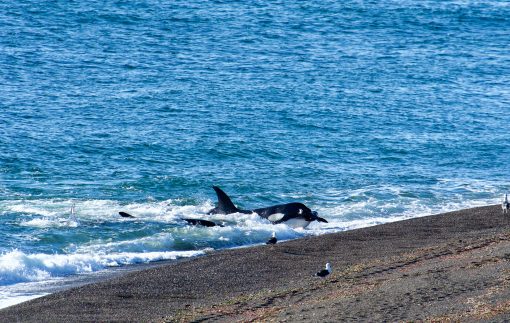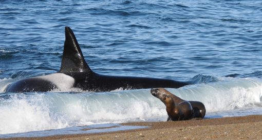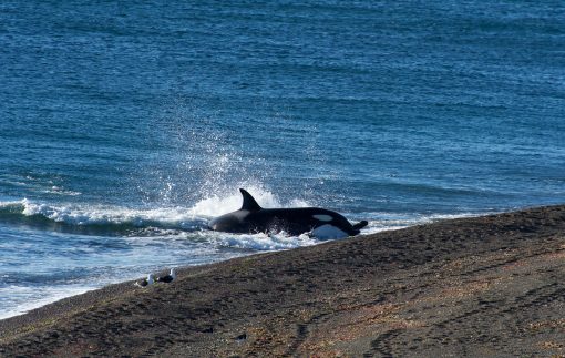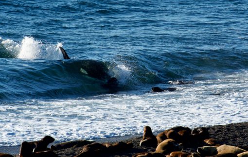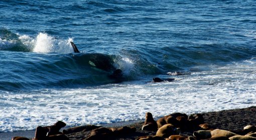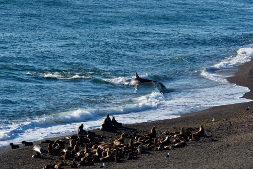 Nature can be harsh, but in the end it is simply food intake, a unique hunting technique and a way to survive. There is no difference between the hunt of the Valdés-Orcas and a lion capturing a zebra or a snake devouring a frog. Despite the cruelty, it is truly amazing to be able to watch these top predators working collaboratively in such an intelligent manner. The diet of orcas worldwide is often specific according to the geography or population and can consist of fishes and sharks but also of dolphins, whales, seals and rays. The beaches of the Península Valdés are the only places on earth where orcas use “intentional strandings” as a way to catch their prey – a magnificent spectacle.